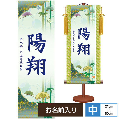 名前入飾り/モダン友禅名入掛軸/端午の節句/松竹梅/サイズ:中名前入飾り モダン友禅名入掛軸〜伝統友禅シリーズ〜気品溢れる和柄が大切なお子様のお名前を華やかに彩る伝統と格式のある友禅調に仕立てた節句名入掛軸。